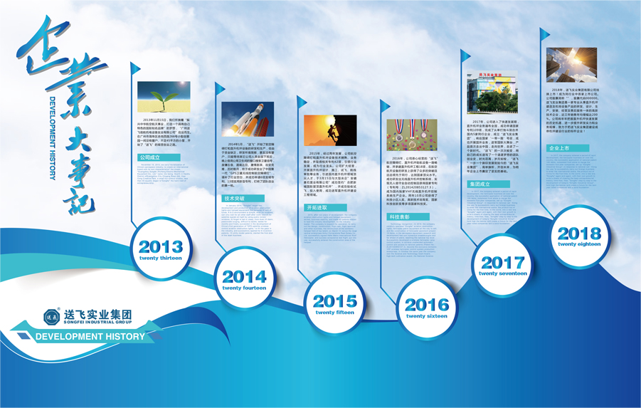 “送飛”團(tuán)隊(duì)從位于廣州市海珠區(qū)赤崗西路266號(hào)小聰創(chuàng)意園的一間不足45平米小屋開(kāi)始創(chuàng)業(yè),懷揣著“振興中華航空航天事業(yè),打造一個(gè)具有自己特色的國(guó)際知名品牌”的夢(mèng)想,“廣州送飛助航機(jī)電設(shè)備實(shí)業(yè)有限公司”應(yīng)運(yùn)而生。創(chuàng)業(yè)初期由于資金缺乏,研發(fā)環(huán)境簡(jiǎn)陋,甚至沒(méi)有窗戶,只能等待其它公司的人員全部下班后,晚上借用公用衛(wèi)生間的窗口搜索衛(wèi)星信號(hào),廢寢忘食、通宵達(dá)旦、激情澎湃、攻堅(jiān)克難,歷時(shí)數(shù)月終于成功研發(fā)出中國(guó)第一代“GPS衛(wèi)星無(wú)線控制航空障礙燈”和中國(guó)第一代“VHF無(wú)線控制直升機(jī)坪系統(tǒng)”,填補(bǔ)了行業(yè)空白,并成功申請(qǐng)實(shí)用新型專(zhuān)利13項(xiàng)、發(fā)明專(zhuān)利6項(xiàng),打響了團(tuán)隊(duì)創(chuàng)業(yè)的第一槍。從幾十平的小屋到整層寫(xiě)字樓;從產(chǎn)品研發(fā)生產(chǎn)、直升機(jī)坪專(zhuān)業(yè)設(shè)計(jì)施工到機(jī)場(chǎng)建設(shè)一體化服務(wù);從單打獨(dú)斗到兼并國(guó)內(nèi)5家同行業(yè)公司的“送飛實(shí)業(yè)集團(tuán)”。 送飛實(shí)業(yè)的一次次蛻變,用自己的成長(zhǎng)譜寫(xiě)了一個(gè)追逐夢(mèng)想的團(tuán)隊(duì)創(chuàng)業(yè)史。時(shí)光荏苒、歲月如梭,送飛實(shí)業(yè)一步一個(gè)腳印發(fā)展到如今的“送飛實(shí)業(yè)集團(tuán)”。